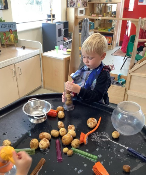 The activities and resources provided are very much led by the children's interests. Their inquisitive questions prompt investigations in diverse directions. We use these teachable moments to move the children forward in their learning.