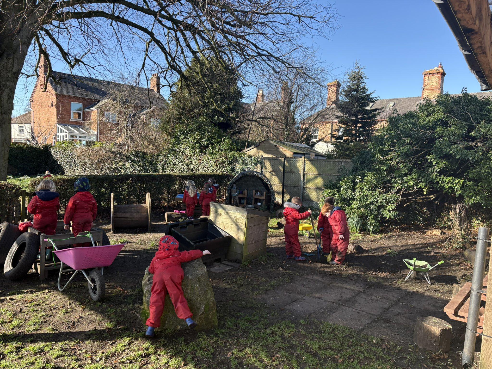 You will often find us outdoors - we love running, climbing, balancing, chasing, hiding, constructing and, of course, jumping in puddles!