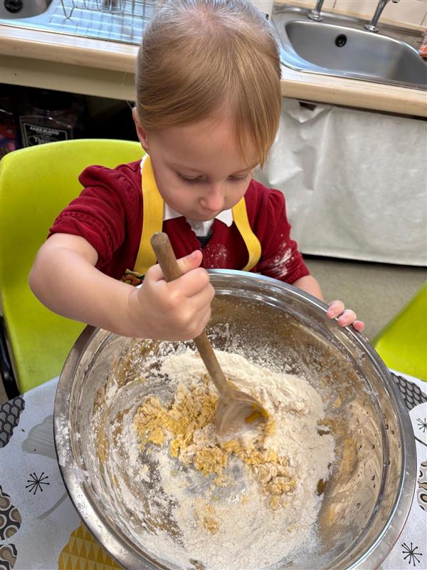Oh the fun times we have! Baking holds lots of super learning moments - measuring, counting, following a recipe, increasing vocabulary, taking turns, working safely and hygienically, changes in materials as they are combined, heated or cooled.