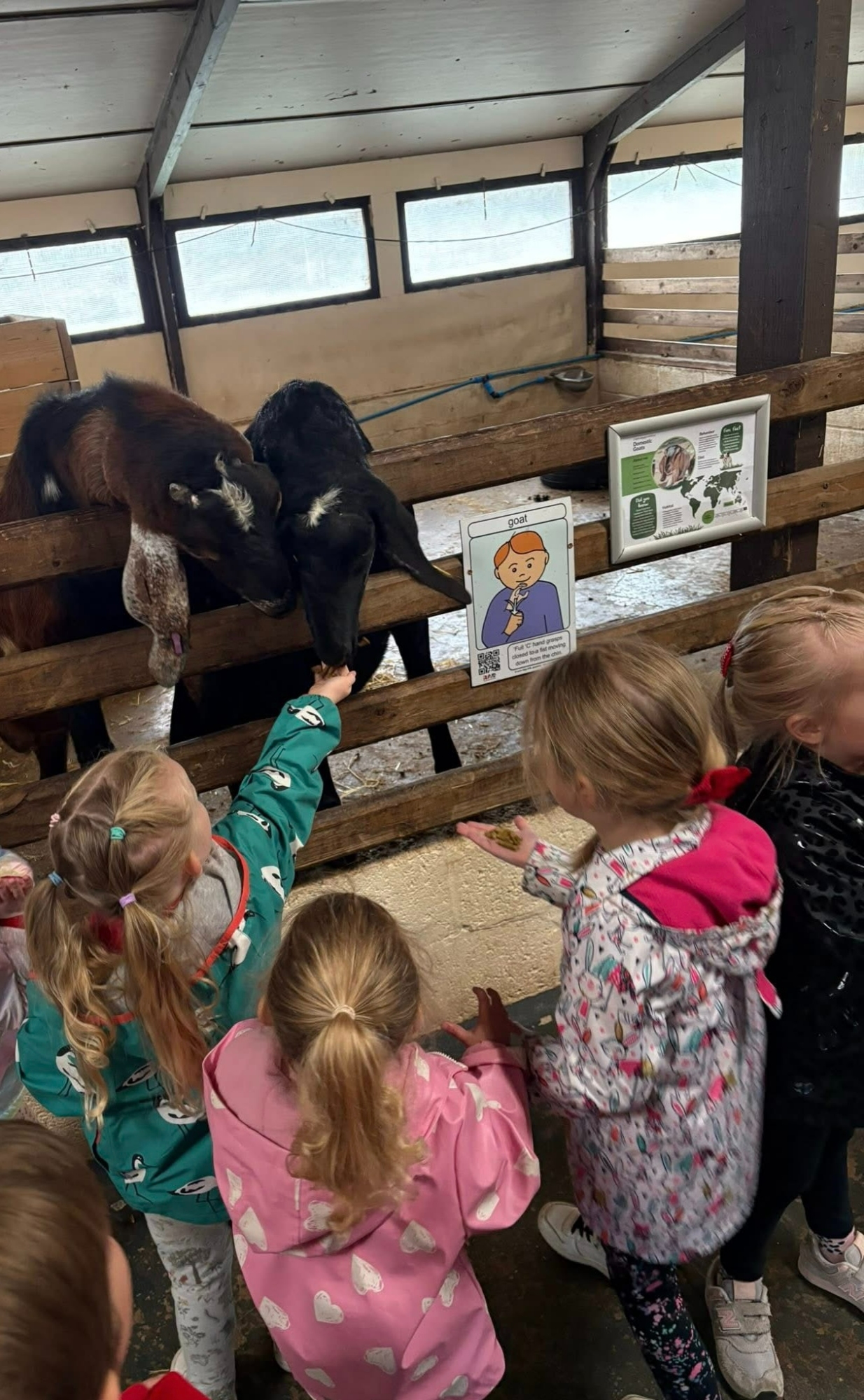 During the visit, the children enjoy seeing a range of farm animals, learning how they are looked after, and learn about the different jobs people do on a farm. This experience supports their understanding of the world, deepens their knowledge of the community they live in, and gives them a memorable, hands‑on opportunity to explore life on a working farm.